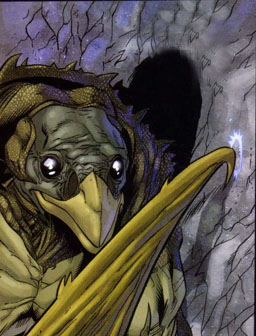 Tephanis is a quickling, a form of sprite, who was summoned by Ulgulu his master a barhest, to help set Drizzt up to take the fall for all the murders that has been happening. Once Drizzt killed Ulgulu and his brother Kempfana. After he learned of his master and protectors death, Tephanis joined Caroak the Great Winter Wolf, telling him of Drizzt and his alliance with the Ranger Montolio DeBrouchee. Who Caroak found both to be a threat and to be dealt with by teaming with an orc king and Roddy McGristle in trying to kill Drizzt. Tephanis told one too many lies to McGristle, and was killed by him.