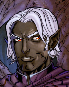 The charismatic and opportunistic drow leader of the mercenary band, Bregan D'aerthe. He eventually gave up his leadership of Bregan D'aerthe to the powerful drow psionicist Kimmuriel Oblodra and now travels the lands of Faer�n with his new companion, Artemis Entreri. Jarlaxle's history is long and vast, to read his full bio check out wikipedia