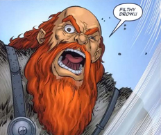 Bruenor Battlehammer is the Dwarf King of Mithral Hall, adopted father to Catti-brie and Wulfgar. First Appearance was in Icewind Dale Trilogy starting with "The Crystal Shard." Bruenor was not always king, he resided in Ten Towns with Catti-brie, Regis and the new comer who resided in the outskrits of the towns...Drizzt. It was not until Bruenor's battle with Akar Kessel who welded the crystal shard, that he later decided to search for the long lost hall. His tricking Drizzt into helping him was the smartest move he could have made.