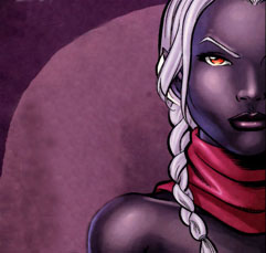 Dahlia is an elf warrior first seen in the Gauntlgrym series.She is with her vampire lover Hector Dor'Crae, and is tasked by the Red Wizard of Thay lich Zuikir Szass to go to create a Dread Ring. This is an enchanted area that produces countless undead minions. She is charged to go to Luskan in order to investigate possibilities. There are several flashbacks of Dahlia as a child and the cruelties she suffered at the hands of Netherese barbarians and demons. She was raped by the barbarians and impregnated by the tiefling Herzgo Alegni and forced to bear his demon offspring which she killed soon after it was born while she was still a child herself. Dahlia is an exceptionally talented warrior and uses the break staff weapon, Kozah's Needle. This is an eight-foot-long staff that can be broken into four two-foot sections attached by a chain. The break staff can be configured in many ways. It also allows the owner to summon lightning during battle. She also wears diamond studs as a tribute to her lovers. Eight are in her left ear to signify lovers she has murdered and one in her right ear for those who have so far escaped that fate. Before leaving on her mission, she kills her former lover Themerelis, a powerful ranger wielding a greatsword. This angers her rival Sylora Salm as she was also Themerelis' lover. She eventually joins Drizzt trying to make up for her wrongs, by helping to free Gauntlgrym from the fire primordial, and stopping Dor'Crae from tormenting Pwent in his new vampire state.